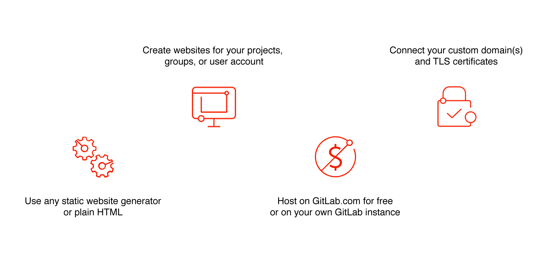 | Let's Encrypt integration | Secure your Pages sites with Let's Encrypt certificates automatically obtained and renewed by GitLab. |